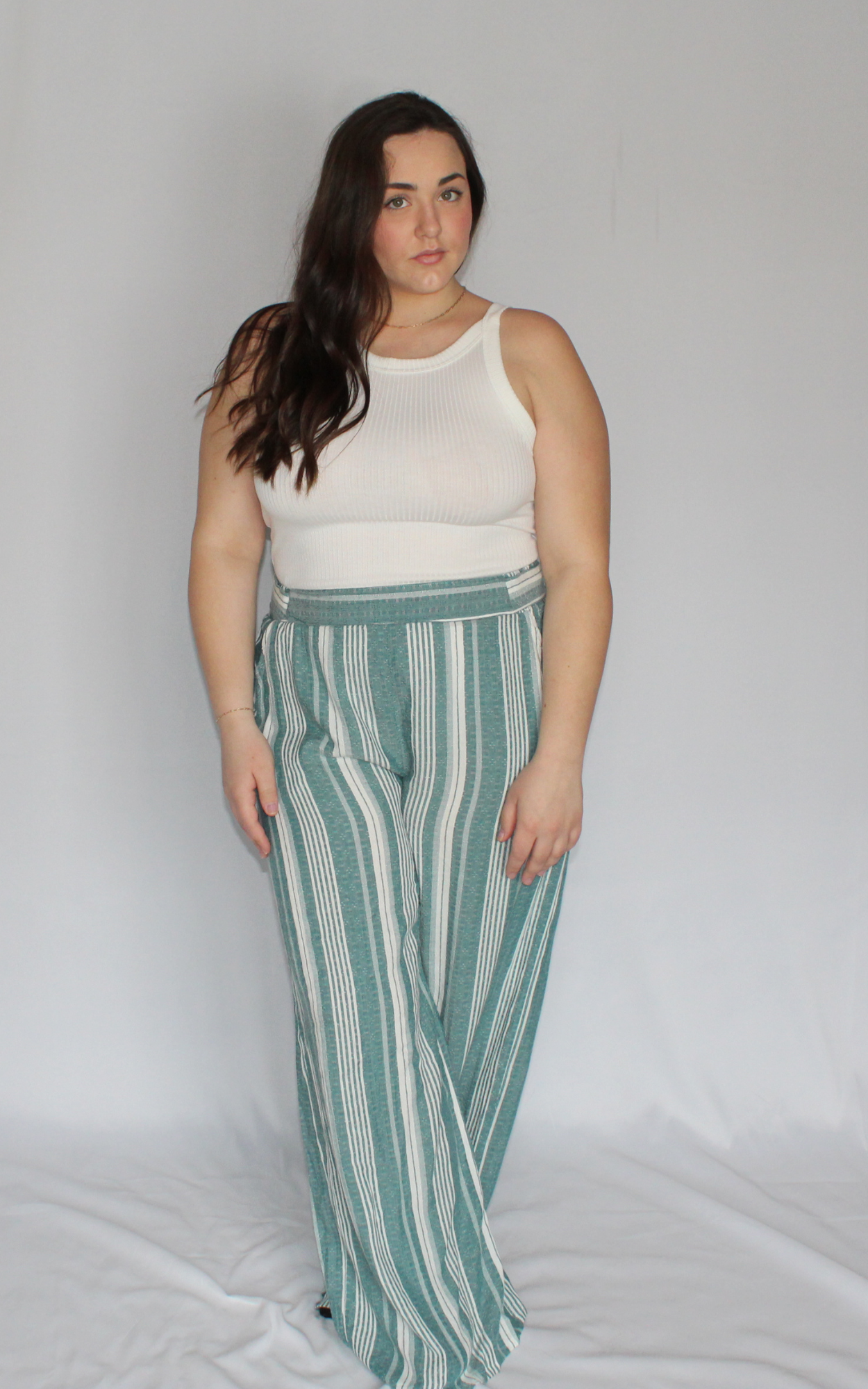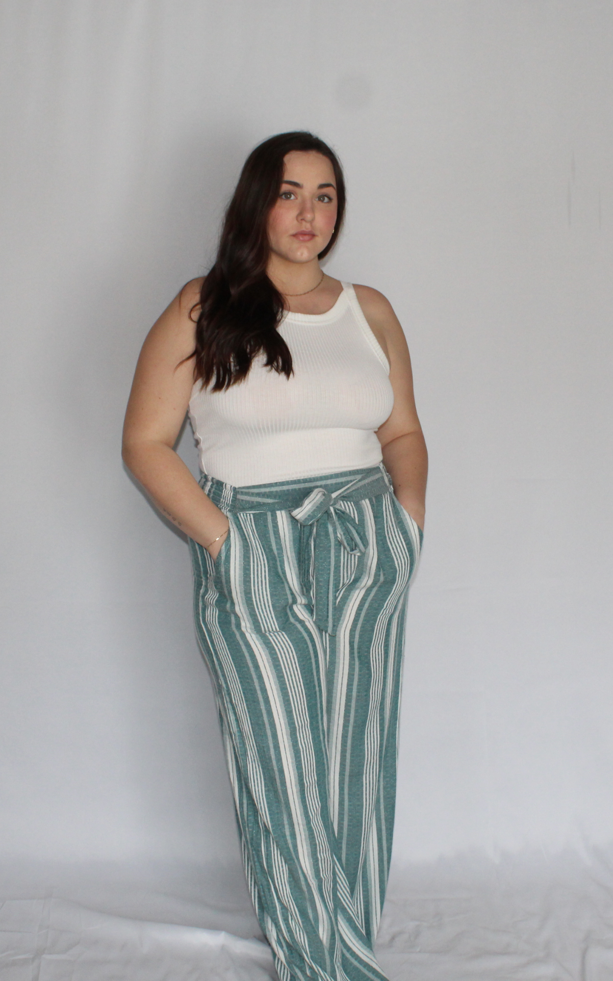 These stylish linen pants feature a classic stripe pattern that's perfect for any occasion. Made with high-quality linen fabric, they are comfortable and breathable, making them ideal for warmer weather. The pants are designed with a relaxed fit and a tied waist for a comfortable, customizable fit. With their timeless style and versatile design, these striped linen pants are a must-have addition for your spring wardrobe.