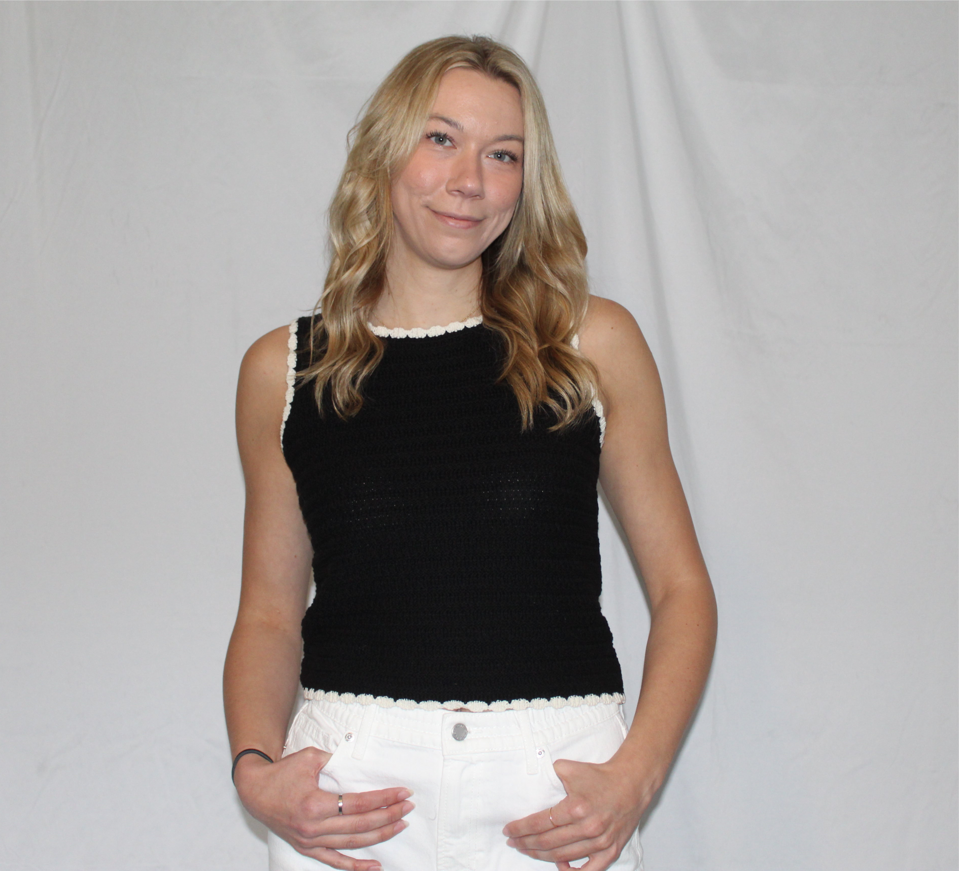 Delicate texture meets effortless charm in the Tula Crochet Top — a sleeveless knit that’s equal parts playful and polished. Featuring a classic black base with crisp white trim, this top offers a flattering silhouette with subtle contrast. The lightweight crochet weave adds breathability and visual interest, making it perfect for layering or wearing solo.